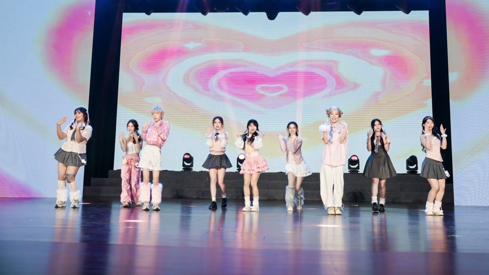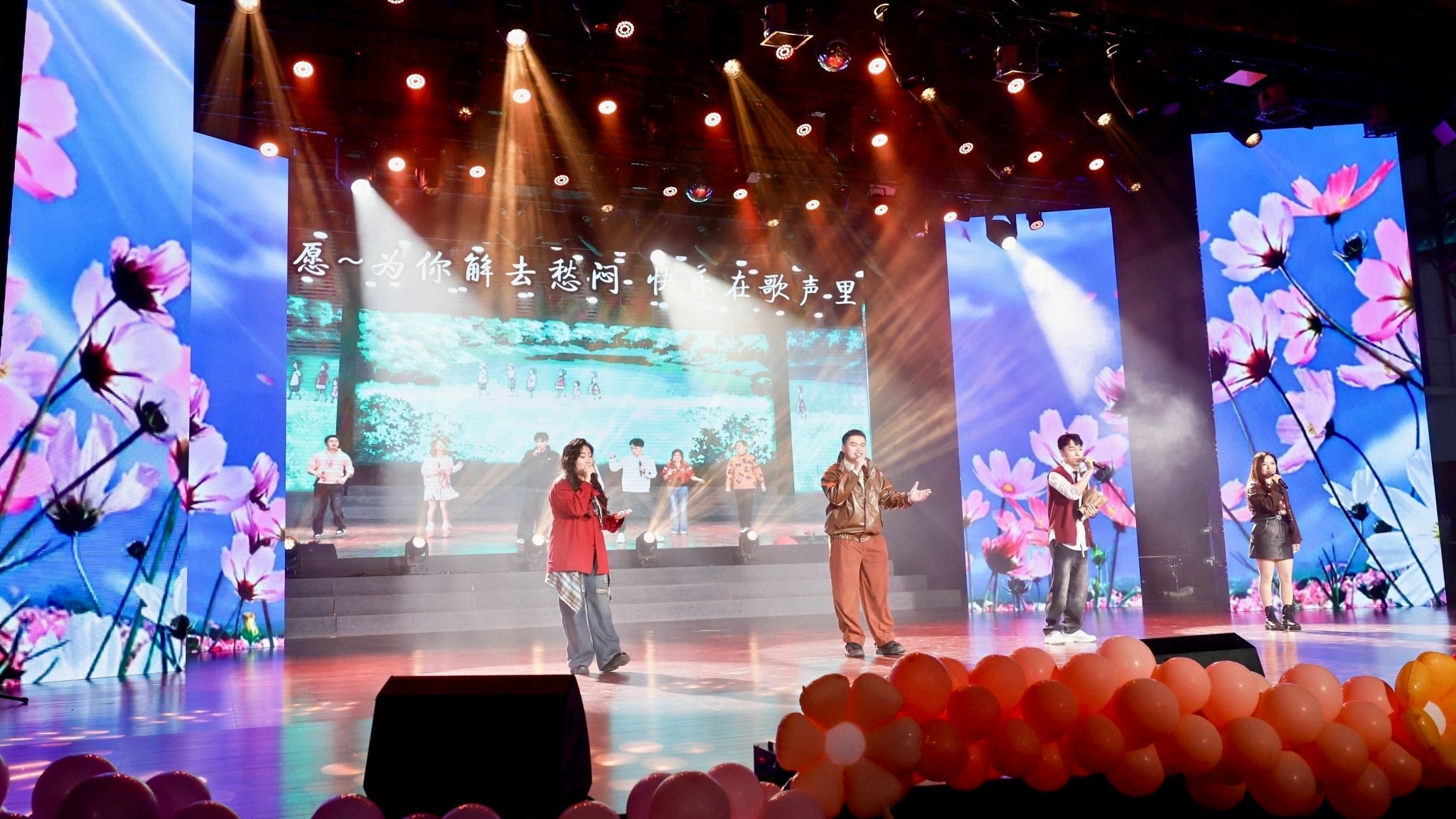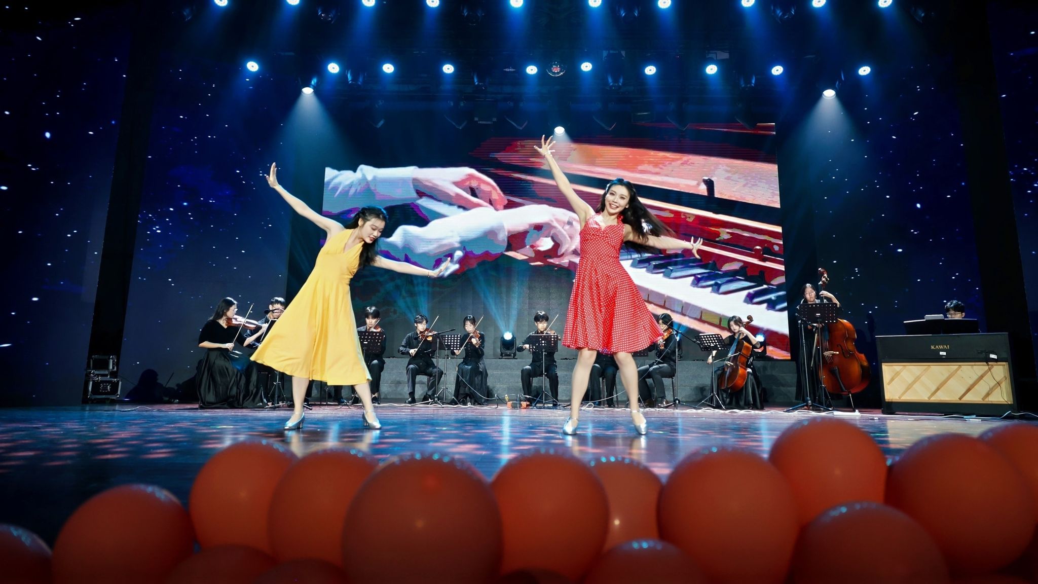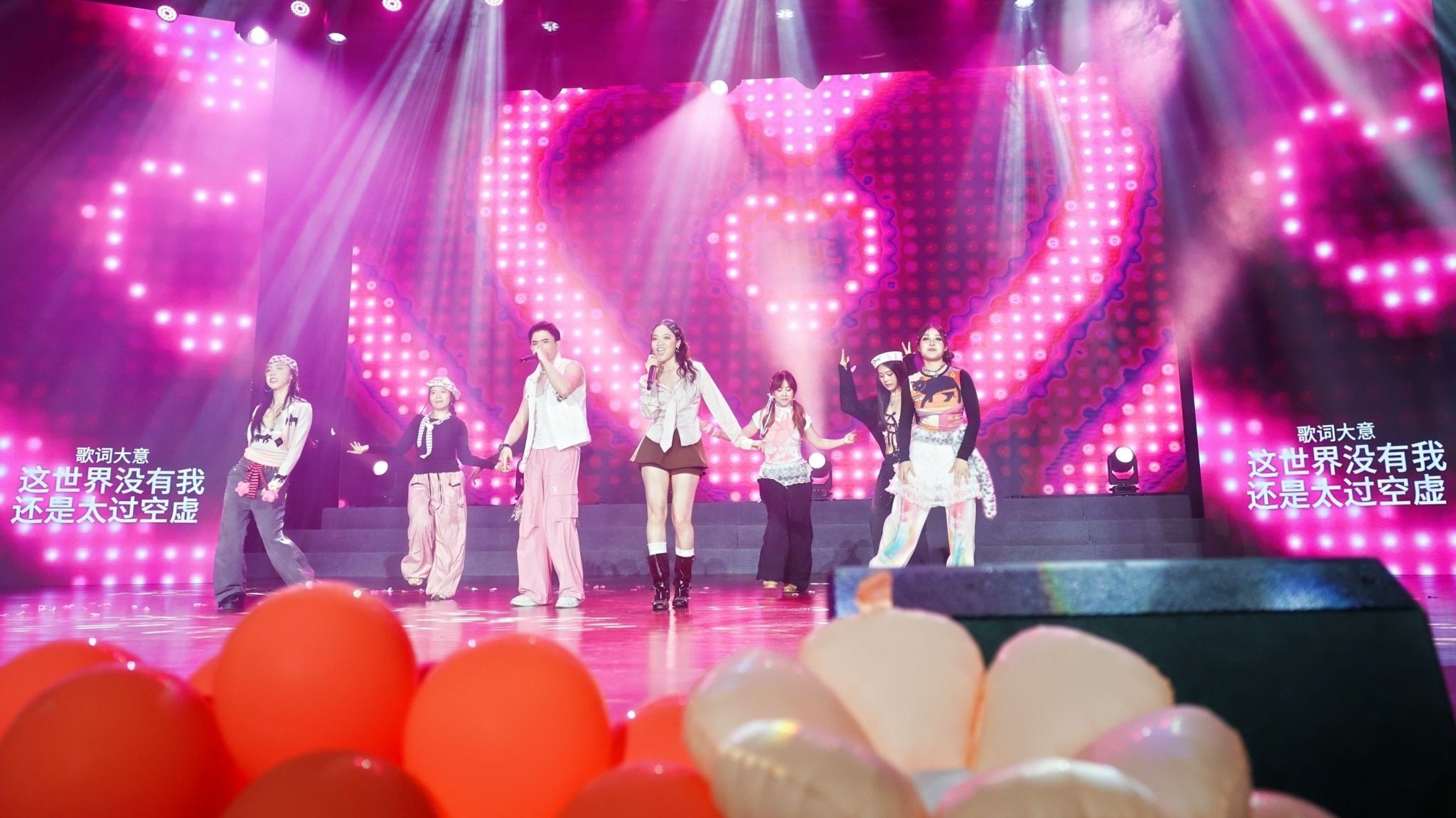 轻快甜蜜的节奏如爱神拨弦,李水艳、林卓晟等同学以灵动舞步、清爽歌声,演绎人海觅知音的悸动与期盼,赋予每一个人奔赴所爱的勇气。粉色光影泡泡漫舞舞台,梦幻氤氲间,全场拍手相和,以歌为箭,冲破犹豫徘徊,共赴一场“爱”的召唤。