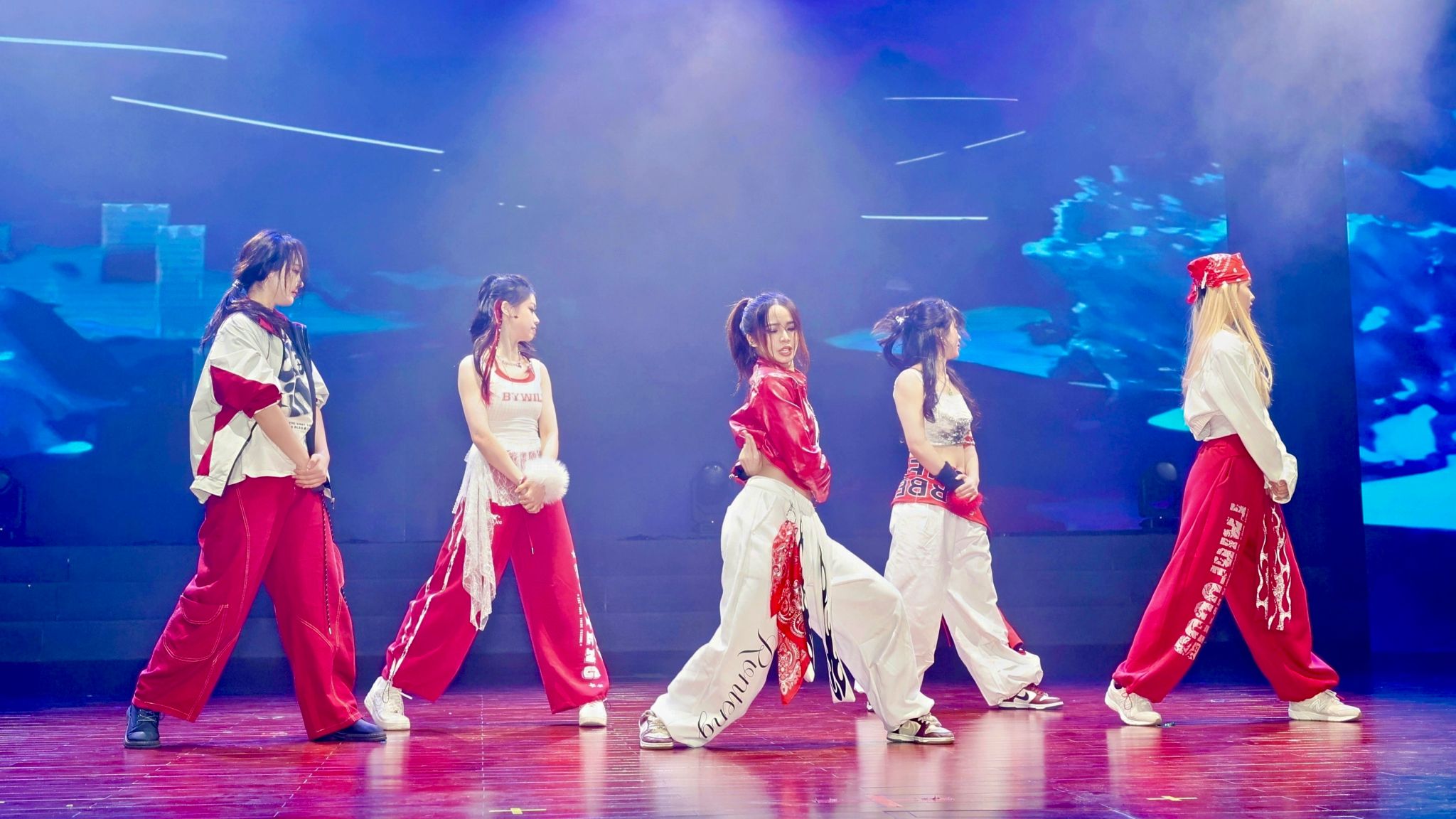 莫芷杏、罗烨诗等同学以街舞的磅礴爆发力,踏响节拍、点燃全场,向所有人呐喊:无需仰望他人的光芒,你我皆是自带锋芒的星光!从张力满分的个人solo到整齐震撼的群舞,每个动作都凝聚着“被看见”的渴望与自信。鼓点撞击胸腔,汗水挥洒光芒——真正的“瞩目”,是忠于所爱、极致绽放时那不可掩盖的锋芒。
