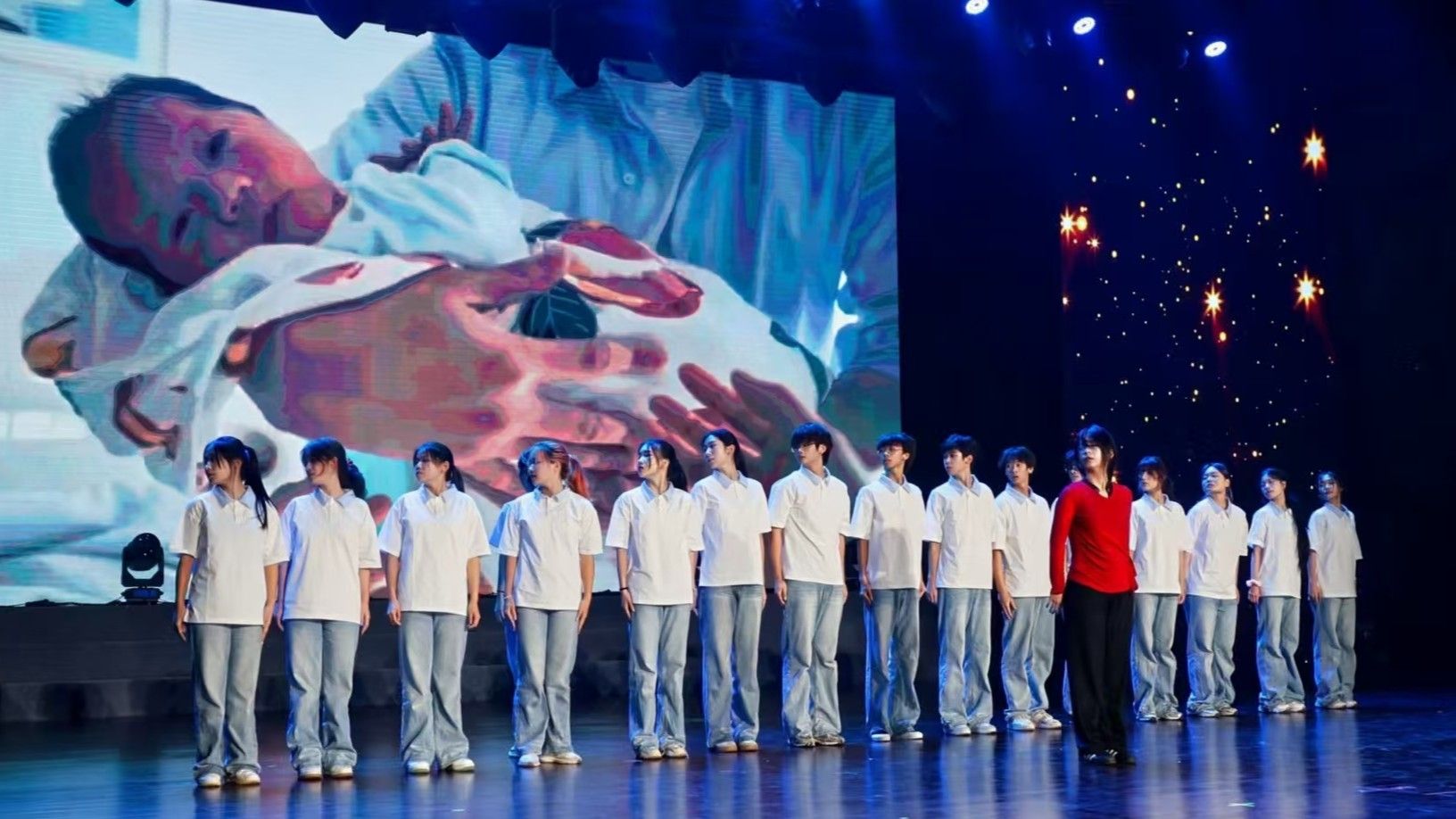 经典旋律碰撞爆发式舞台能量,引燃理性与情感的深度燃烧。教师陈艺洋与学生谭志豪双声交织,倾诉与呐喊共振;鼓点轰鸣,恰似心跳铿锵。让我们在歌声中见证——真理的火焰,于无数次深潜后划破黑暗;无畏的勇气,携冲破深潭的力量,直面前路未知!