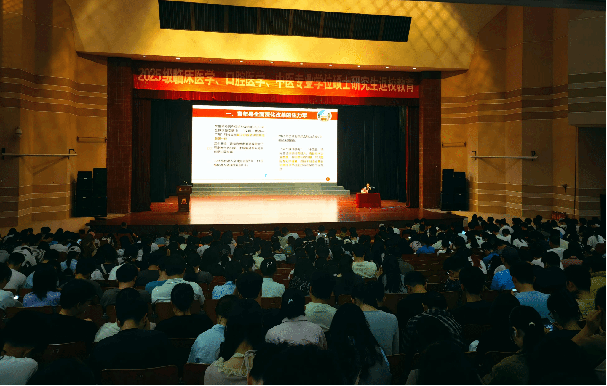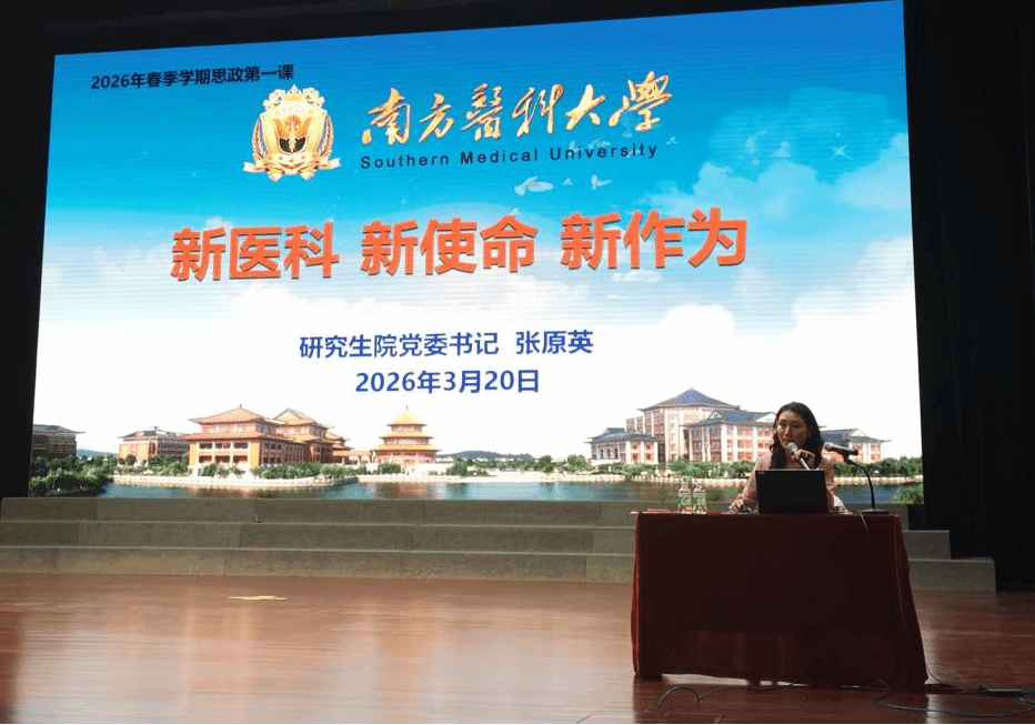为深入学习贯彻党的二十届四中全会精神,引导研究生把思想和行动统一到党中央关于“十五五”发展的顶层设计上来,在新医科浪潮中找准定位、勇担使命,3月20日,研究生院党委书记张原英以“新医科 新使命 新作为”为题,在学校大礼堂为2025级900余名临床医学、口腔医学、中医专业学位硕士研究生讲授思政第一课。