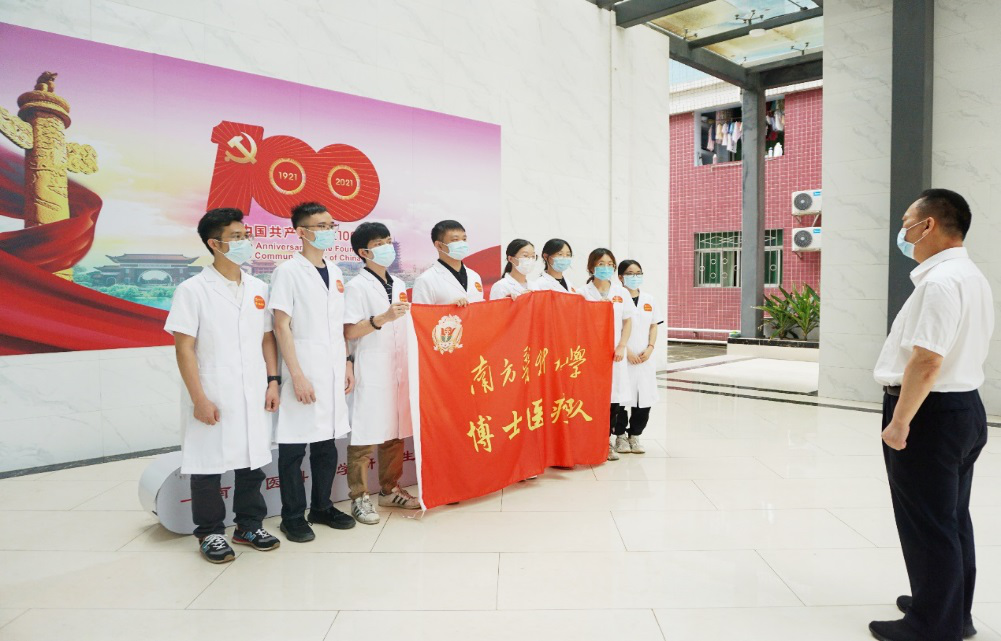 6月11日下午16:00时,在校本部研究生院楼,南方医科大学博士医疗队再次出征。6月12日至6月20日期间,队员们将按广东省教育考试院要求,开展疫情期间医疗保障志愿服务。
