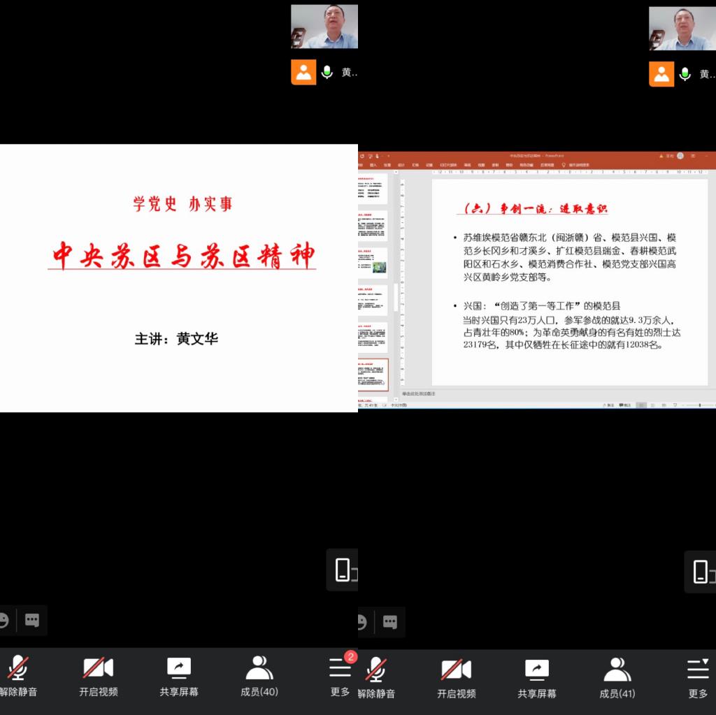7月4日晚,黄文华常务副院长以“学党史 办实事——中央苏区与苏区精神”为题,给研究生院机关全体党员讲授专题党课,本次专题党课采用“腾讯会议”APP,以线上视频的形式进行。